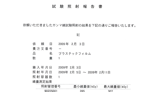線量測定結果をまとめ、照射報告書を発行します。