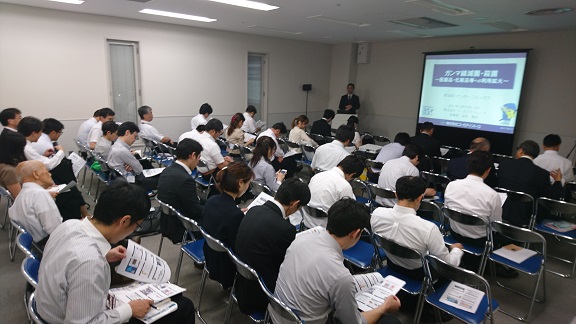 また、29日(木)の出展社によるプレゼンテーションで、「ガンマ線滅菌・殺菌~医薬品・化粧品等への利用拡大~」についてお話しさせていただきました。