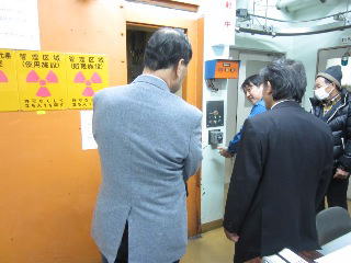 概要説明の後、簡単な放射線測定実験と、倉庫と照射室内の見学をしていただきました。
