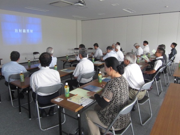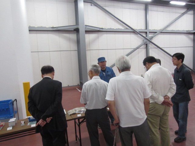 概要説明を聞いていただいた後、ガンマ線照射が利用されている製品の展示説明、また、倉庫と照射室内の見学をしていただきました。