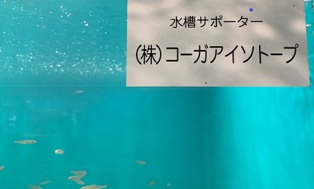 ワカサギの水槽に社名が掲示されておりますので、機会がございましたら ご家族とご一緒に、ぜひご覧ください。